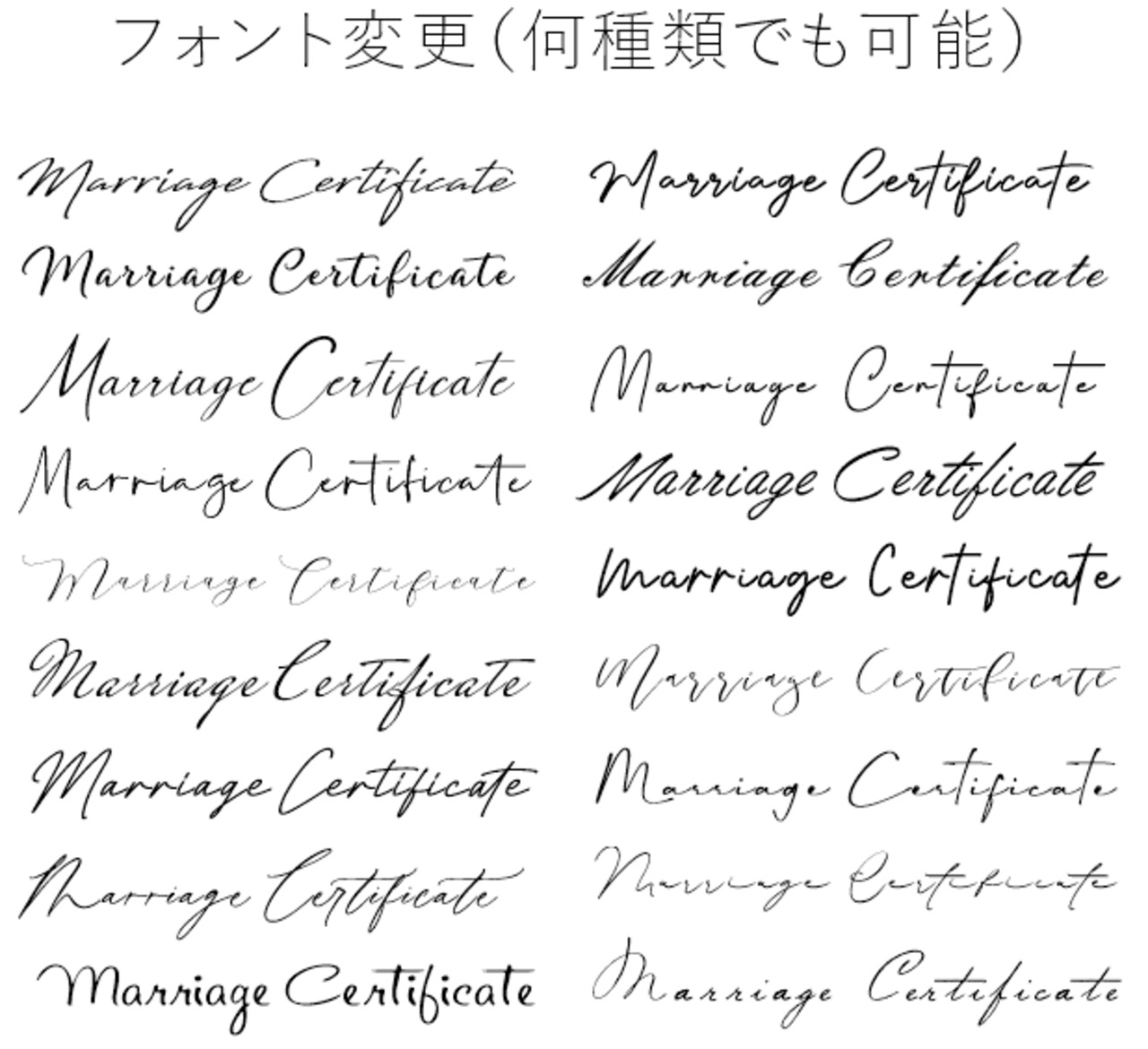 フォント変更:テンプレート以外のフォントをご希望の場合(何種類でも変更可)